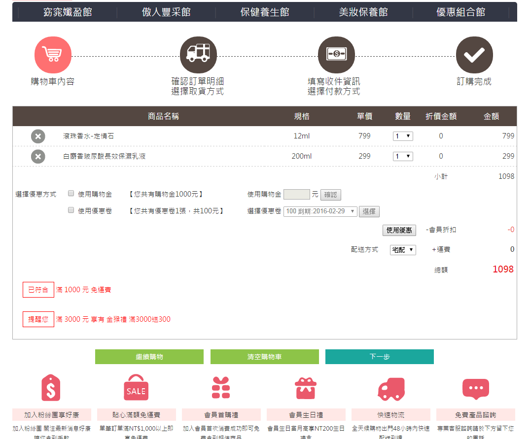 單筆訂單滿NT$1,000以上即享免運費