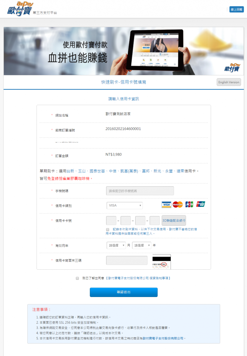 線上刷卡流程